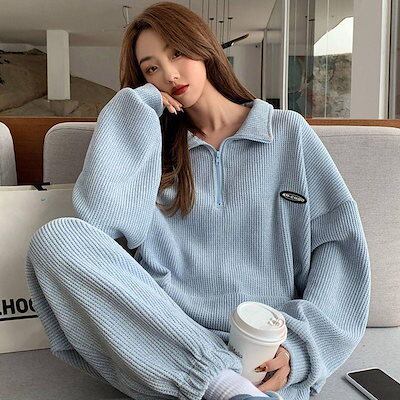 快適 トレーナー 怠惰な風 /パーカー ゆったり 長袖スウェット2点上下セット 日韓国ファッション 長袖トップス/パンツ セットアップ カジュアル レディース 秋冬 大きいサイズ 人気新作