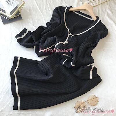 ニットセットアップ レディース 40代 秋冬 長袖 ニットカーディガン Vネック タイトスカートニットセットアップ オシャレ韓国風 大人着痩せ 通勤 50代 30代