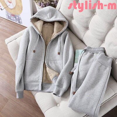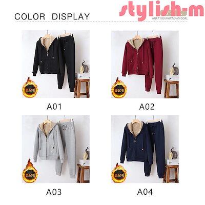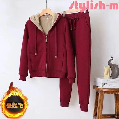 セットアップ レディース 上下セット パーカー 裏起毛 厚手 真冬 秋冬 裾口ゴム カジュアル 防寒 冷え対策 普段着 シンプル 無地