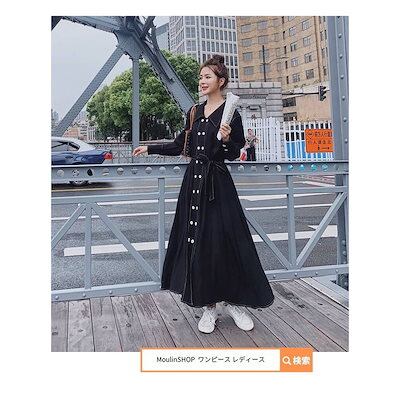 ワンピース レディース レディース ロングワンピース マキシワンピース 前開き 秋冬 ロング マキシ丈 きれいめ Aライン フレア 大人 上品 長袖 大きいサイズ カ