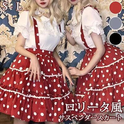 水玉柄 Aライン Lolita ゆめかわ フリル 可愛い 萌え萌え 友達 姉妹 プレゼント ショート丈 膝上丈 レディース コスム 仮装 ハロウィン 学園祭 文化祭 水色 黒 赤 ロリータ サス