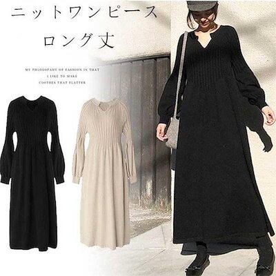 ニットワンピース ロングワンピース レディース ニット 長袖 ロング丈 大きいサイズ Aライン ゆっ