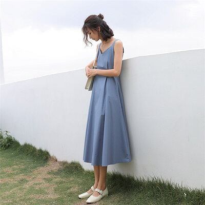 ワンピース ワンピ ロングワンピース レディース チュニック マキシ丈 ロング丈 膝下 無地 Vネッ