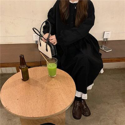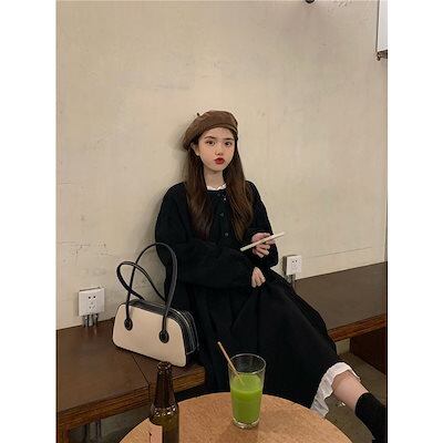 ワンピース レディース ロングワンピース ロングワンピ 無地 長袖 秋 体型カバー 切替 Aライン