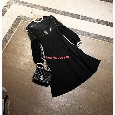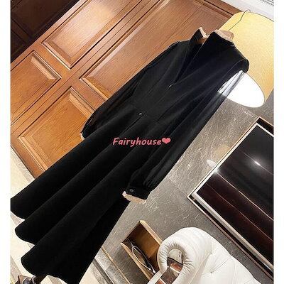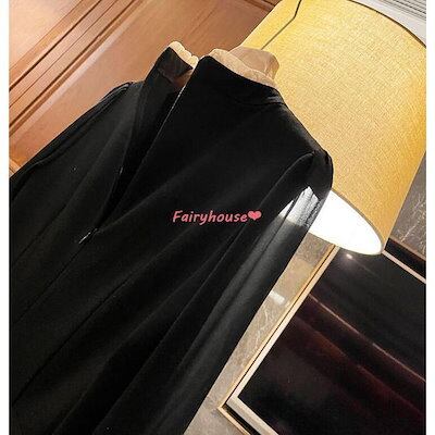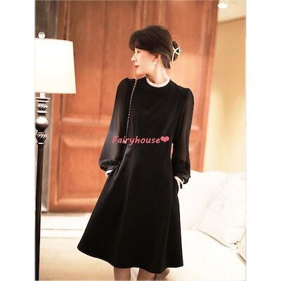 ワンピースレディース 40代 きれいめ 膝丈ワンピース 春秋 長袖ワンピース パフスリーブ 黒シフォンスカートAライン オシャレ大人 着痩せドレス ゆったり30代