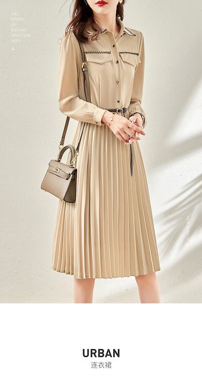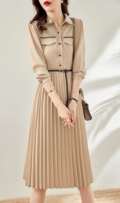 シャツワンピース レディース 40代 きれいめ 膝丈ワンピース 春秋 長袖ワンピース Aラインプリー