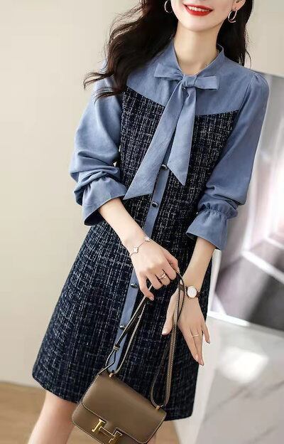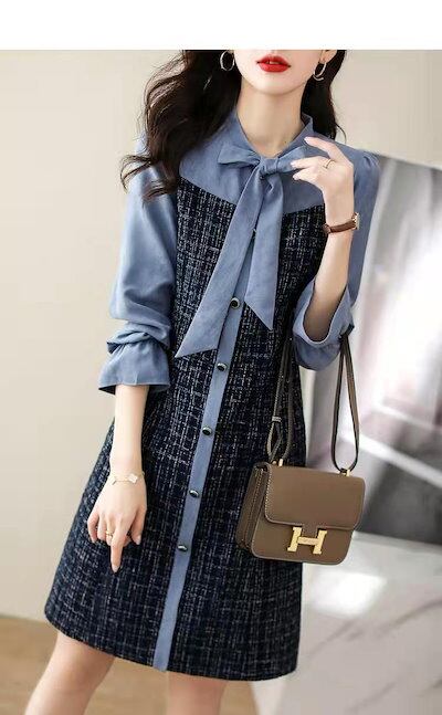 ワンピース レディース 40代 きれいめ 膝丈ワンピース 春秋 長袖ワンピース リボン Aラインスカ