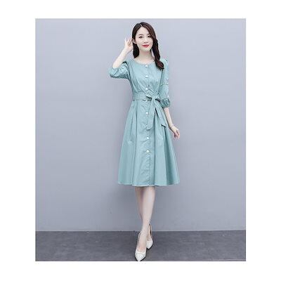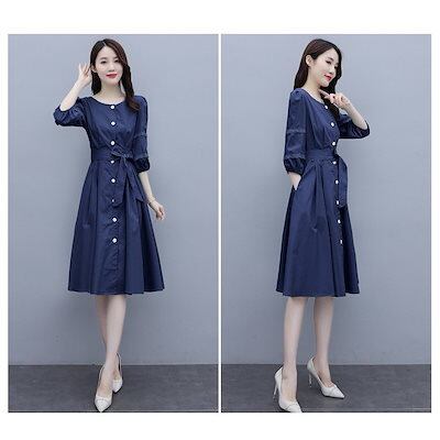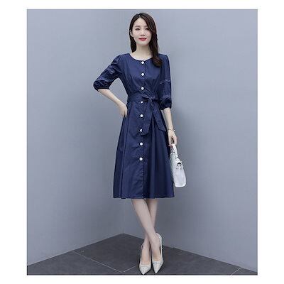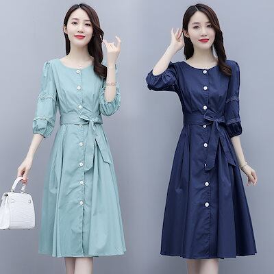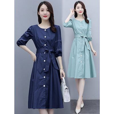 ワンピース レディー 膝丈ンピース 春夏秋新作 きれいめ 五分袖ワンピース パフスリーブ Aラインス