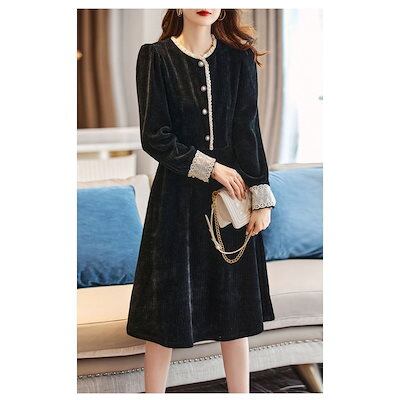 ワンピース レディース 40代 きれいめ マキシワンピース 秋冬 長袖ワンピース 黒 フレア Aライン スカート おしゃれ ベルベット 大人 ドレス 厚手 30代 50代