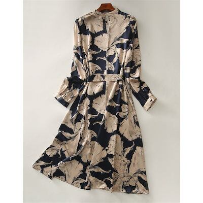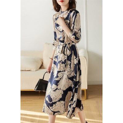 ワンピース レディース 40代 きれいめ マキシワンピース 春夏秋長袖ワンピースプリントレション Aラインスカート オシャレ大人 上品 ゆったり 通勤OL韓国風