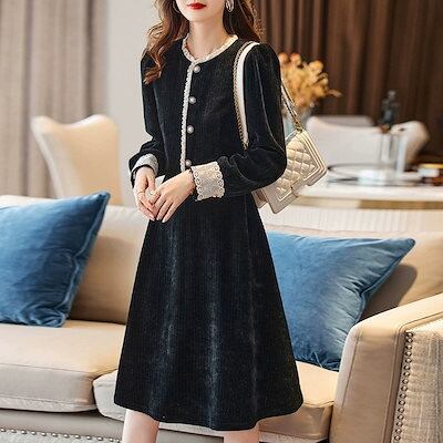 ワンピース レディース きれいめ マキシワンピース 秋冬 長袖ワンピース 黒 フレア Aライン スカ