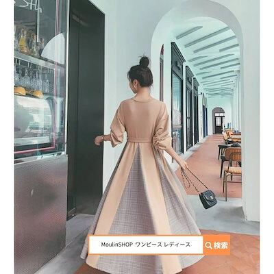 レディース 秋冬 レディース ロングワンピース マキシワンピース 切り替え プリーツ 韓国 ロング マキシ丈 きれいめ Aライン フレア 大人 上品 長袖