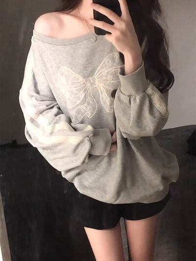 2024 秋冬 トップス 長袖 かわいいラウンドネック Tシャツ レディース 韓国風 ルーズ ゆったり 無地 カジュアル おしゃれサイズ シルエットファッション系シャツ衣装お出かけ