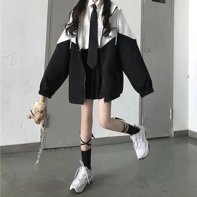 2024 秋 韓国 かわいい レディース アウター ブルゾン お出かけ ブラック配色コーデ アウター羽織り長袖セクシートップスサイド冬カジュアルファッション系お出かけフル丈トラック