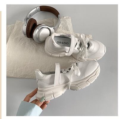 2024 秋 可愛い ゆったり ボリュームソール スニーカー 足首ほっそり 厚底 シューズ 脚長効果 美脚見え 学生 通学 シンプル カジュアル 涼しげ スタイルアップ kawaii 靴 白 | Jeannede ジャンヌデ