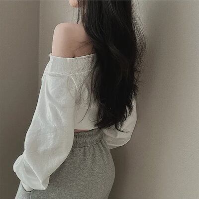 2024 秋冬 トップス 長袖 かわいいショート丈ラウンドネック Tシャツ 肌見せ レディース 韓国風 ルーズ ゆったり 無地 カジュアル おしゃれ ファッション系コーデ衣装ストレートお出かけ