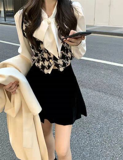3点セットスカート トップス ベスト ショートミニ OL 通勤 レディース セットアップ 上下セットコートコーデ 女っぽ カジュアル きれいめ 大人っぽ 型 フレンチ 秋 冬春