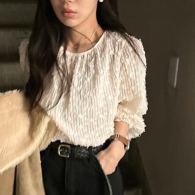 2024 秋冬ブラウス レディース 韓国 春 秋 冬 白 ホワイト 長袖