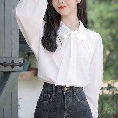 2024 秋冬パフスリーブボウタイブラウス