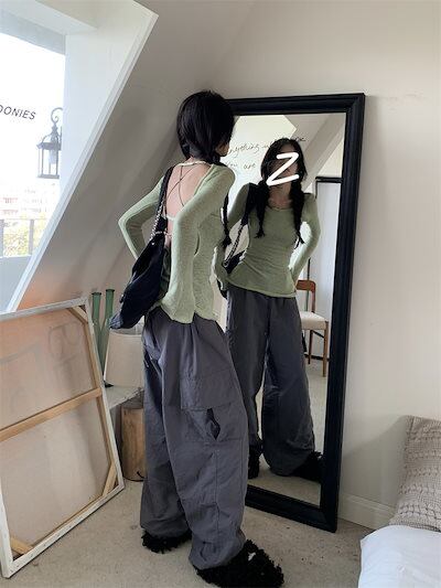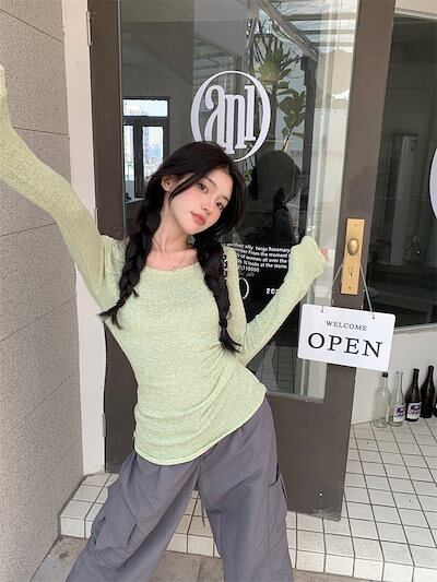 2024春秋 ニットトップス 2点セット レディースレースアップ長袖 韓国系ファッション 可愛い ニット プルオーバー セクシー ニット ショート丈トップスおしゃれ 薄手透け感 クロシェ
