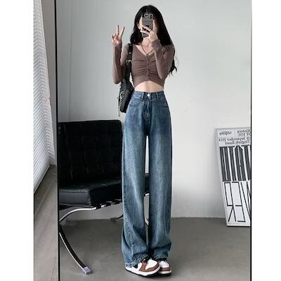 スラックスパンツ ジーンズ レディース 夏の薄いセクション 2024年新作 ハイウエスト 薄手 ゆったり ドレープ ワイドパンツ 韓国