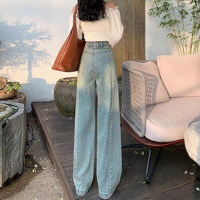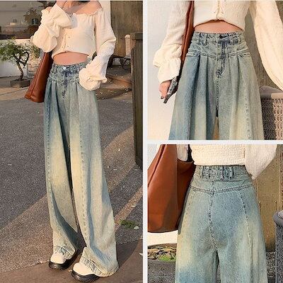 デニムパンツ ヴィンテージストレートジーンズ レディース新作 ハイウエストドレープワイドパンツ