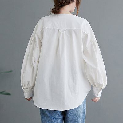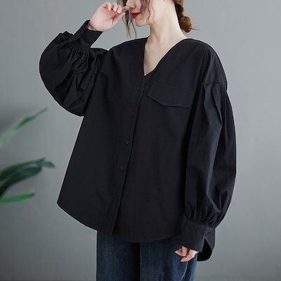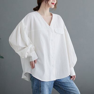 長袖シャツ レディース 長袖 チュニック vネック 前開き 無地 ボタン トップス 羽織り 体型カバー ゆったり カーディガン 大きいサイズ オシャレ 通勤 シャツ フォーマル ゆったり 白シャツ シ