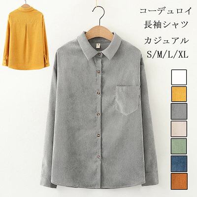コーデュロイ シャツ レディース 長袖シャツ 長袖 折り襟 前開き ポケット付き トップス 無地 ボタン タック 白シャツ 通気 カジュアル 長袖ブラウス きれいめ おしゃれ 人気 ブラウス ゆったり