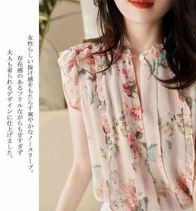 ブラウス ノースリーブ シャツ フリル シャツブラウス レディース 夏 ドッキング ボタン プルオーバー プリント ドット柄 花柄 チェック柄 トップス 大きいサイズ ゆったり 体型カバー 涼しい 薄