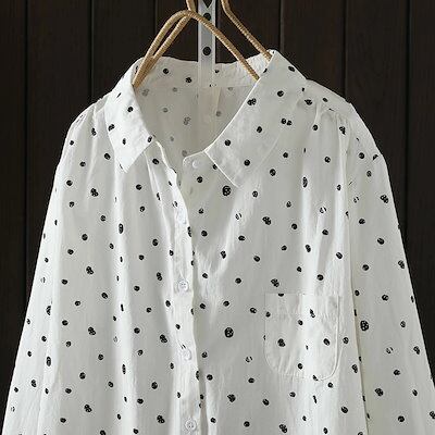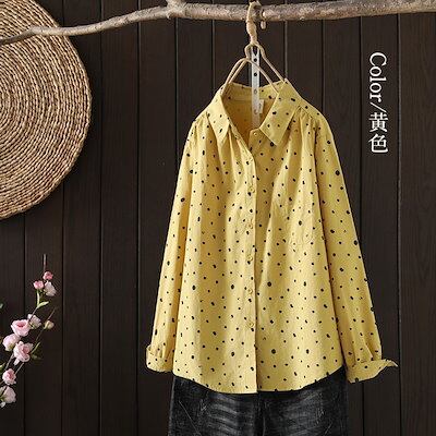 ドット柄 総柄 シャツ 長袖 レディース 襟付き きれいめ フリル 綿 コットン 羽織る 羽織れる トップス レギュラーカラー シャツブラウス ボタン 前開き 柄 ギャザー 体型カバー ゆったり ライ