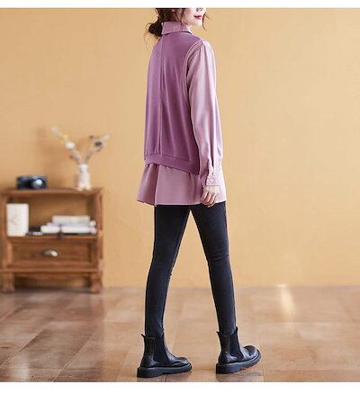チェック柄 カシュクール シャツ レディース チュニック ブラウス 長袖 シャツブラウス 切り替え トップス 秋 薄手 ニットソー 折り襟 ボタン ふんわり ギャザー 切り替えトップス スタイルアップ