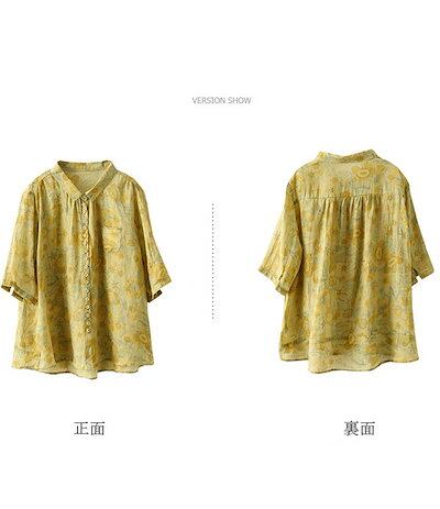 シャツ 半袖 レディース チュニック 花柄 大きいサイズ 体型カバー シャツブラウス 春夏 折り襟 五分袖 夏シャツ 五分袖 開襟 ボタン付き 総柄 トップス 綿麻風 切り替え ポケット 透け感 通気