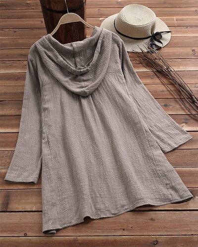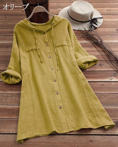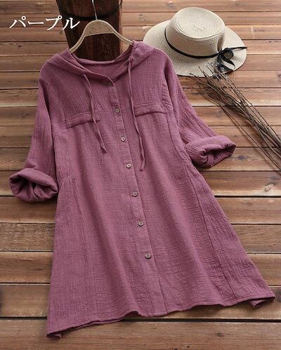 フード付き シャツ ブラウス レディース 長袖 ロングシャツ ロング丈 フード ボタン留め 長袖シャツ 薄手 ふんわり チュニック 大きいサイズ 羽織りもの 冷房対策 夏 フード付きシャツ 袖折り返し