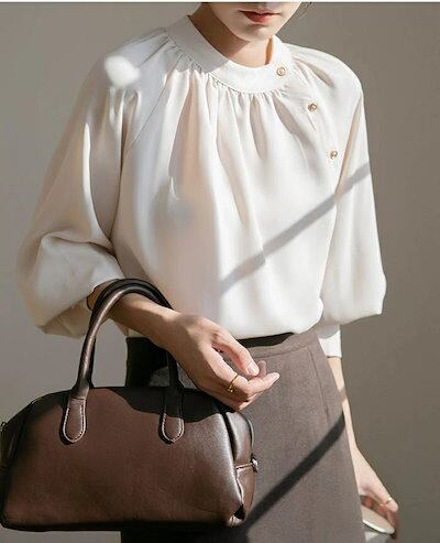 ブラウス 長袖 レディース シャツブラウス オフィス シャツ とろみシャツ フォーマル 長袖 パフスリーブ トップス プルオーバー タック ボタン 無地 シャツブラウス インナー カジュアル 春 着痩
