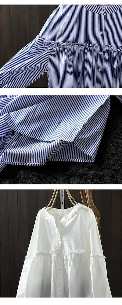 シャツ レディース 前開き ブラウス シャツブラウス 春 夏 秋 トップス シャツ 無地 ストライプ柄 長袖 体型カバー ゆったり カジュアル シンプル おしゃれ 大人 かわいい ボタン 大きいサイズ