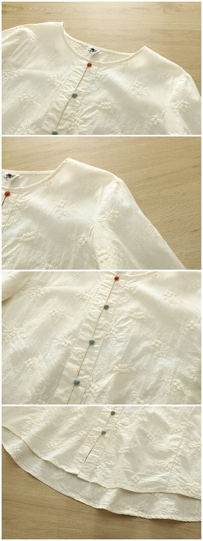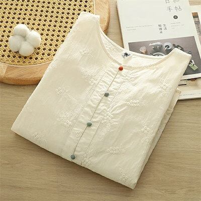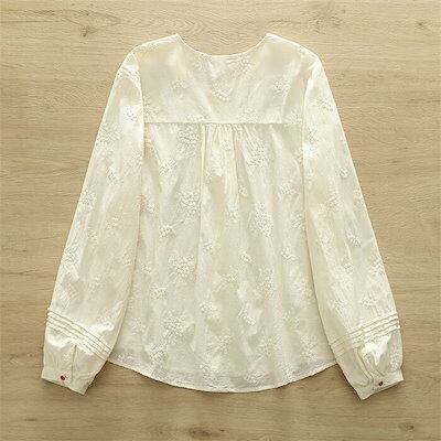 シャツ ブラウス コットン レディース 長袖 シャツ ブラウス 刺繍 綿 花柄 春 夏 秋 シャツブラウス トップス 配色ボタン ゆったり 体型カバー オリジナル 上品 きれいめ 通勤 オフィス 着回