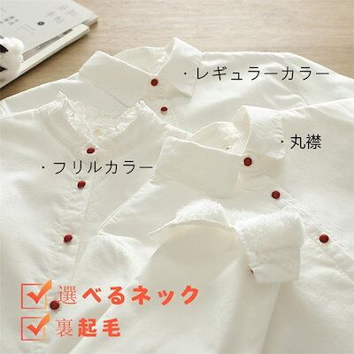 裏起毛 シャツ 長袖 レディース 秋冬 綿 コットン 裏起毛シャツ 選べるネック レギュラーカラー フリルカラー 丸襟 トップス 配色ボタン シャツブラウス 秋 冬 通勤 大きいサイズ ゆったり 着回