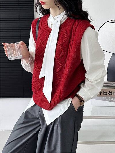 ニット ベスト レディース 春 秋 冬 ファッション ニットベスト 大きいサイズ 秋冬 きれいめ ニット お洒落 上着 暖か トップス 可愛い おしゃれ ノースリーブ シンプル 無地 プルオーバー カ