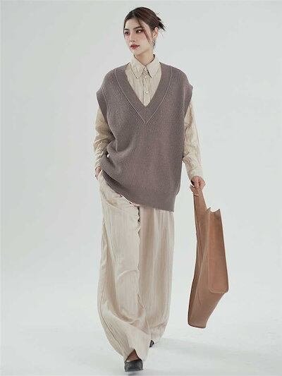 ニット ベスト レディース コーデ 秋 冬 春 vネック 春秋 シンプル 上品 きれいめ ニットベスト 秋冬 セーター ノースリーブ 着回し トップス 体型カバー ゆったり ふわふわ 柔らかい カジ