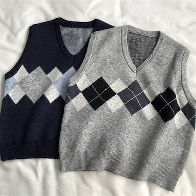 アーガイル柄 ベスト レディース 春 秋 冬 ニット ファッション ニットベスト 大きいサイズ 秋冬 きれいめ ニット お洒落 上着 暖か トップス 可愛い おしゃれ ノースリーブ シンプル プルオ