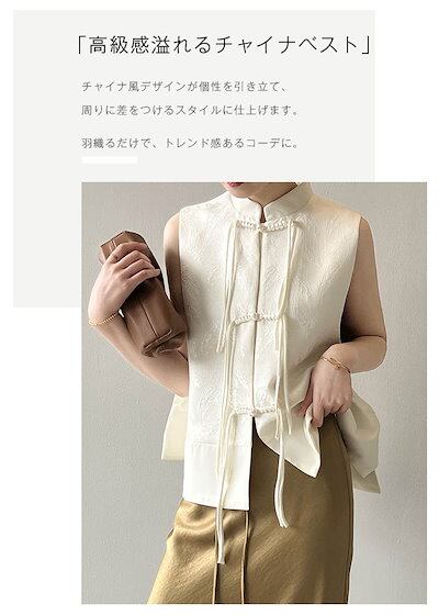 ジレ ベスト レディース ジレ レディース 春 夏 秋 冬 チャイナ ベスト レディース 前開き ベスト 春夏 秋冬 オールシーズン トップス ベスト ミドル丈 ミドルジレ チャイナボタン 刺繍 サマ