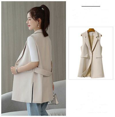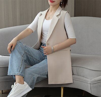 ジレ ベスト レディース 春 春秋 ジレ テーラードベスト ロングベスト ライトアウター ノースリーブ オシャレ 秋 前開き おしゃれ ジレベスト 大きいサイズ トップス 秋冬 カジュアル レイヤード