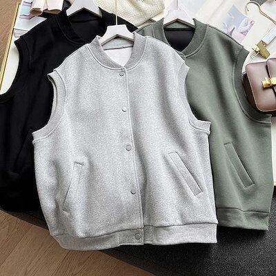 綿 ベスト レディース 前開き 秋冬 おしゃれ ノースリーブスタジャン ベスト ジレ トップス スタジャンベスト スウェット 大きいサイズ スタジャン ノースリーブ ジャケット 春 秋 冬 体型カバー