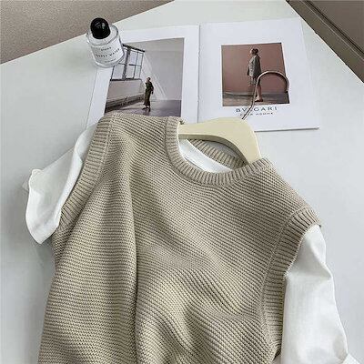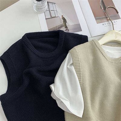 新作 ニット ベスト レディース 春 秋 冬 プルオーバー サマー ベスト ニットベスト ファッション おしゃれ クールネック 無地 トップス 体型カバー 秋冬 シンプル カジュアル 着回し 上品 き