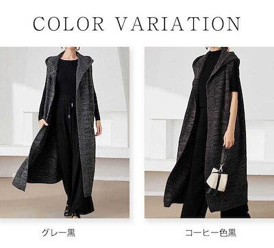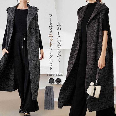 ジレ ベスト レディース ニットベスト ロングジレ ニット 秋冬 ロングベスト ジレベスト ニットコート ノースリーブ ロング丈 フード付き 羽織り お洒落 重ね着 レイヤード 春 秋 冬 ゆったり | Jeannede ジャンヌデ