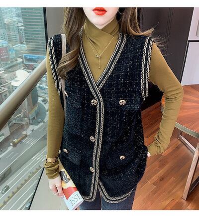 ベスト レディース ジレ ベスト 前開き ジャケット レディース ツイード ジレ ベスト ロング 羽織 アウター 春 ラメ 光沢 上品 高見え セレカジ ママ 入学式 入園式 卒業式 結婚式 通勤