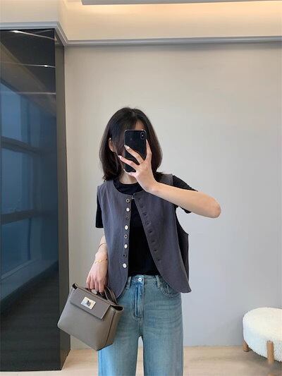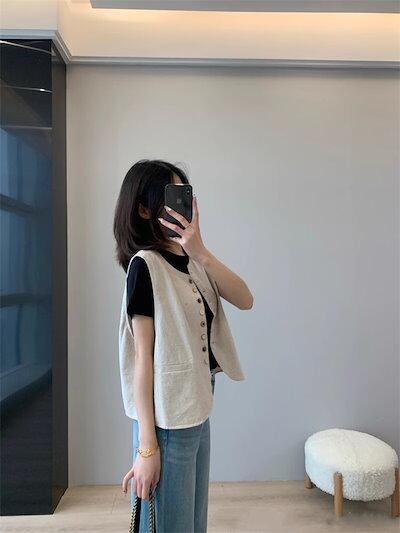 ジレ レディース ベスト 前開き ジレ 春夏秋 綿麻風 綿麻風ベスト トップス ノースリーブ 無地 カジュアルベスト クルーネック トップス ジレベスト 羽織り 袖なし 大きいサイズ ゆったり 前開