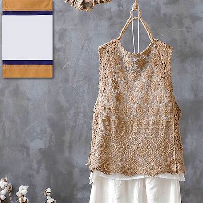 かぎ編み ベスト レディース カーディガン 綿 ニットベスト 春夏 クロシェ編み トップス 透かし編み レースベスト 羽織り レイヤードニットベスト 無地 透け きれいめ カジュアル レイヤード