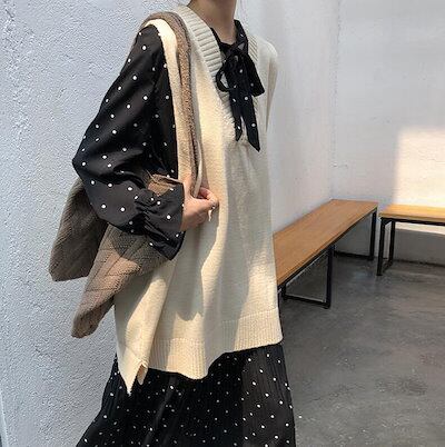 ニットベスト レディース ニット ベスト トップス ノースリーブ ロング丈 Vネック シンプル 無地 カジュアル レイヤード 重ね着 大人 可愛い 女性 お出かけ オシャレ ゆったり 春 秋 冬