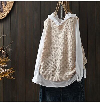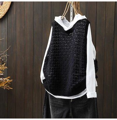 ニットベスト レディース ニット トップス ベスト ノースリーブ 透かし編み クルーネック シンプル レイヤード 重ね着 無地 セーター カジュアル 大人可愛い 女性 お出かけ オシャレ ゆったり 春
